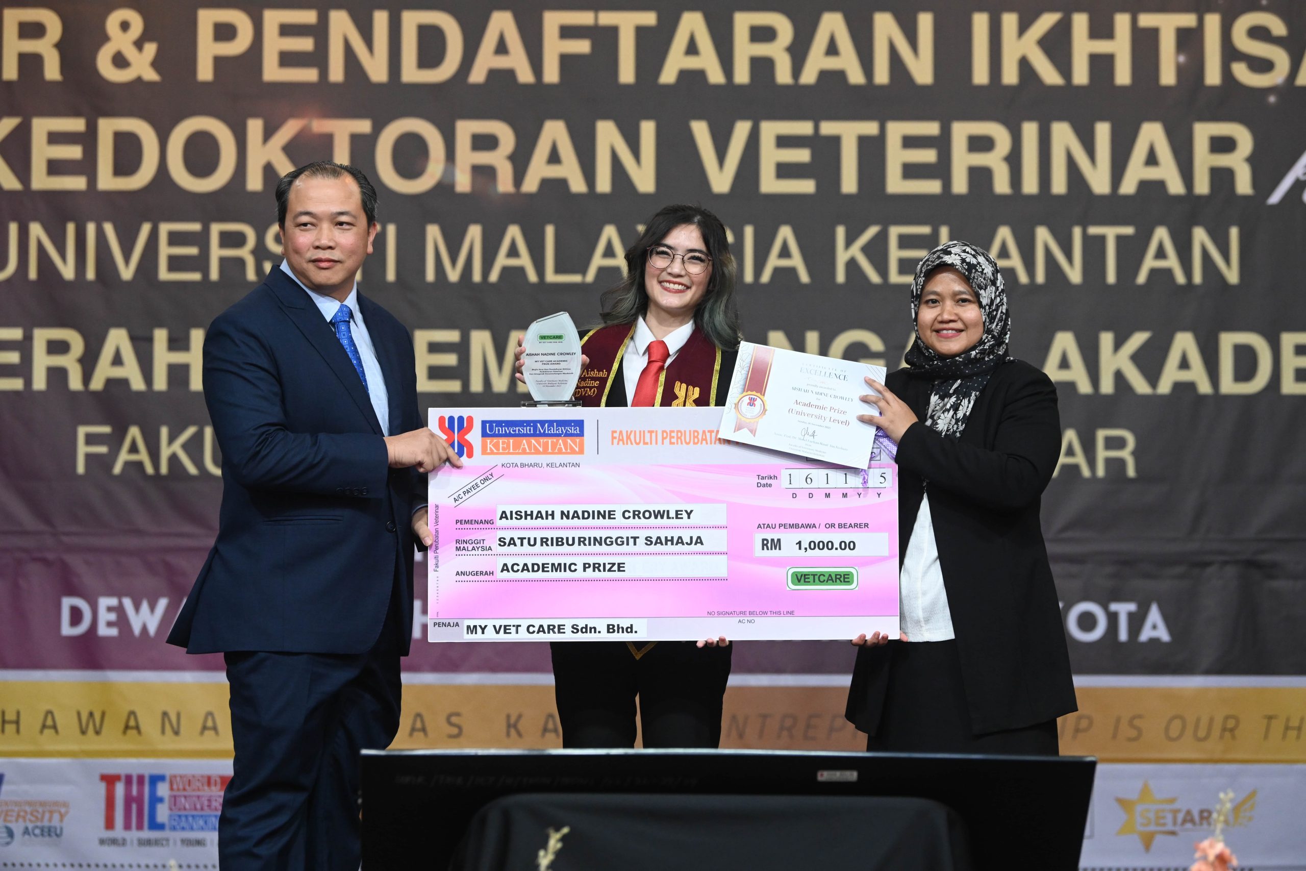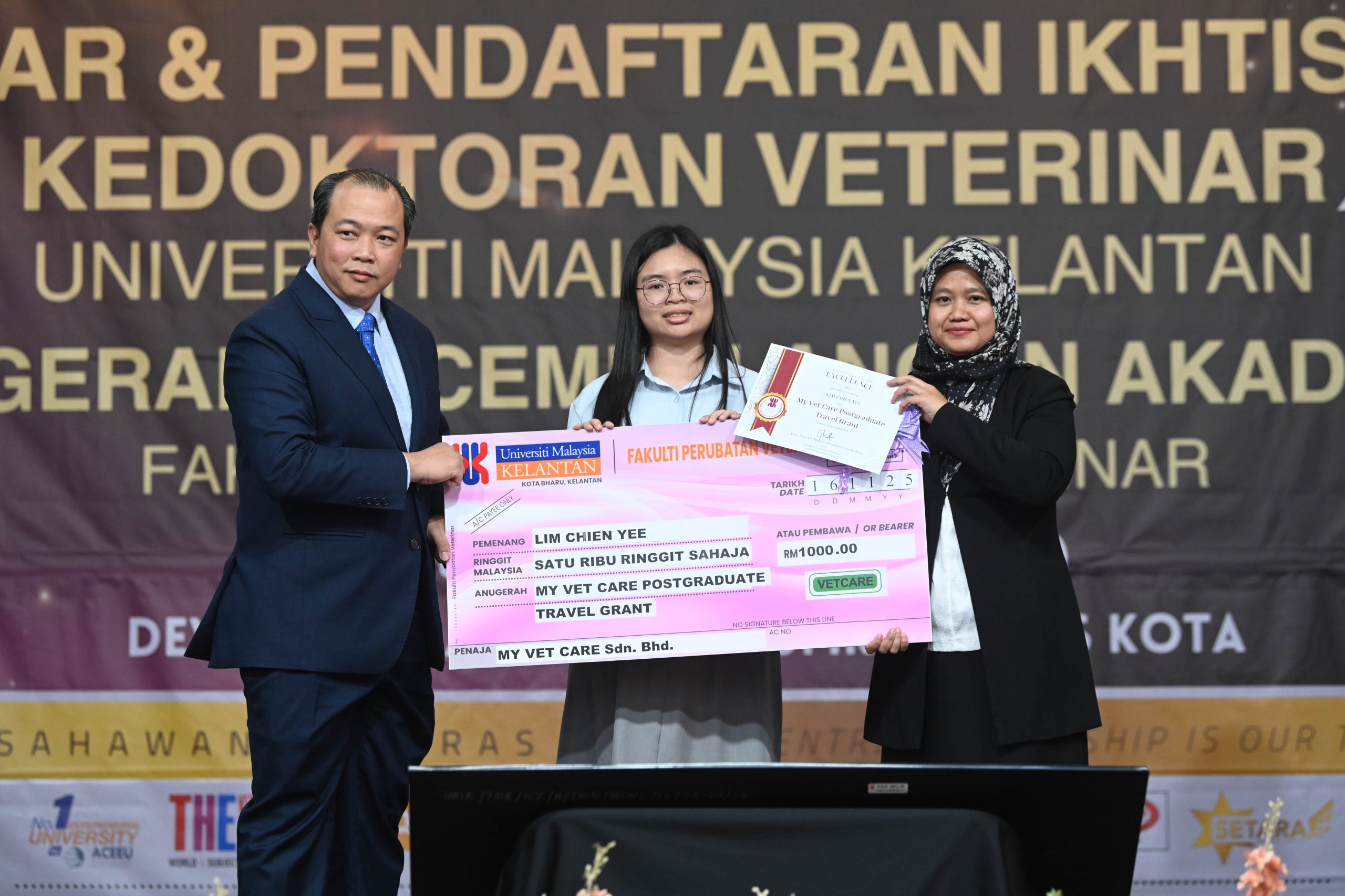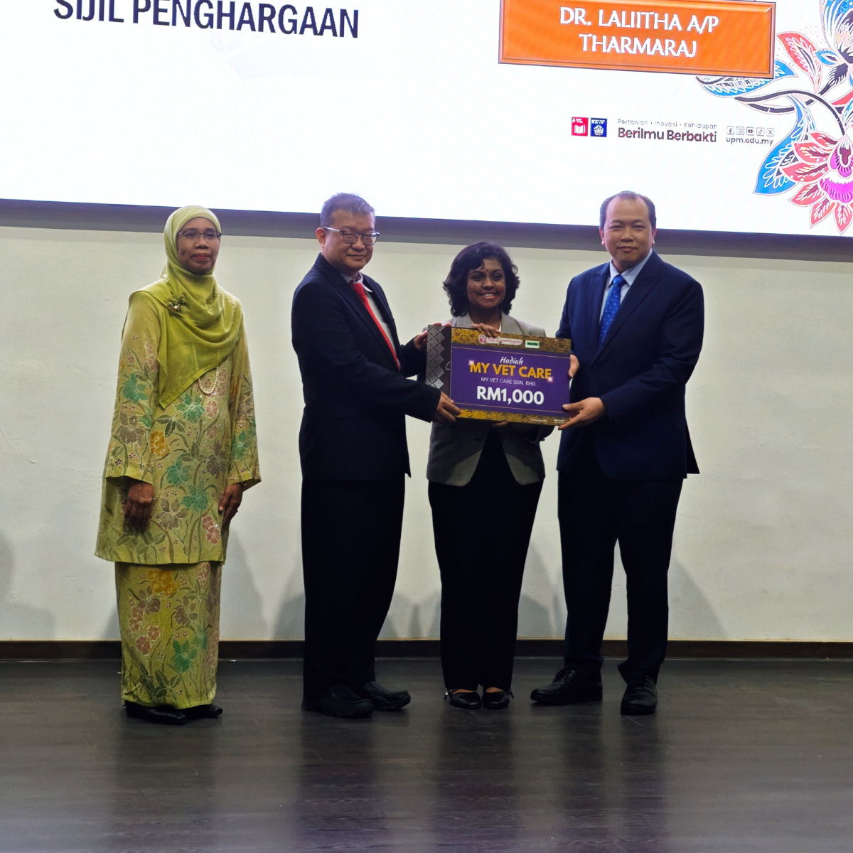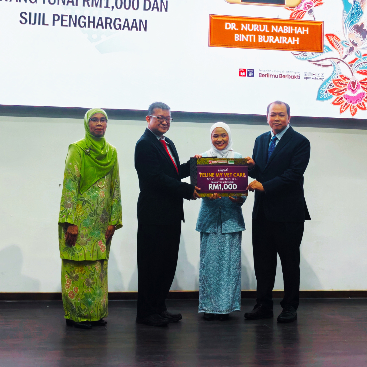 This award is given to DVM student who achieved outstanding academic performance. We are proud to sponsor this prize, recognizing the hardwork of UMK's top veterinary student. From left: Mr. Liu Chang Haur, Award winner - Dr. Aishah Nadine Crowley, Dr. Basripuzi Nurul Hayyan