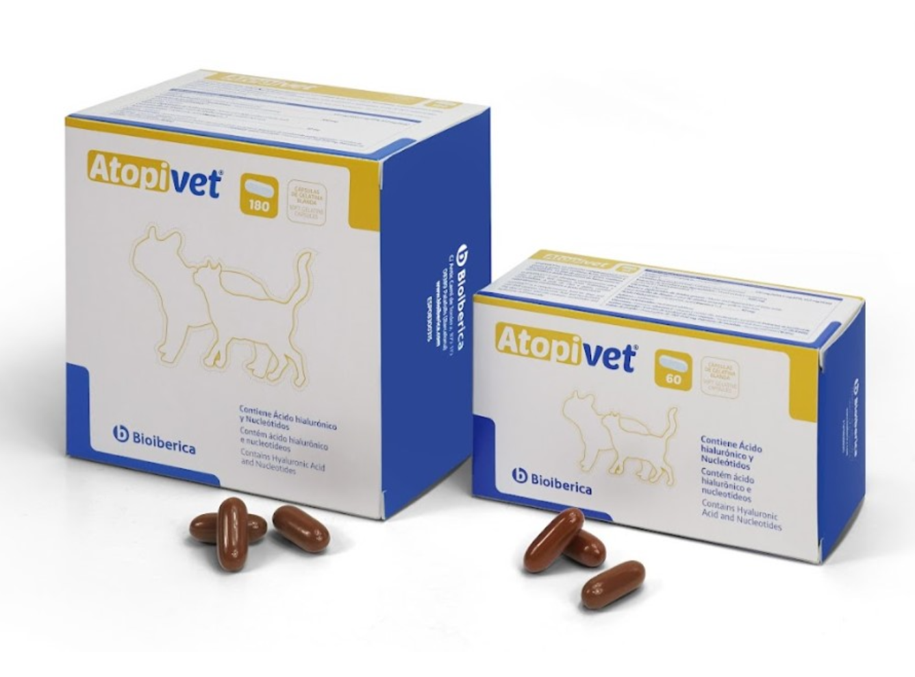Atopivet® Capsules is a complementary feed for dogs and cats that contains hyaluronic acid and nucleotides. The skin of dogs and cats contains nucleotides and hyaluronic acid naturally.